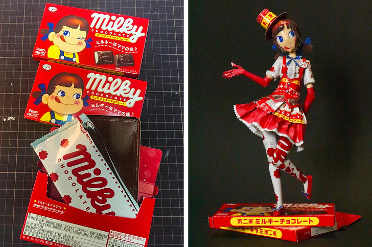 Японський художник робить із упаковки з-під продуктів фігурки, використовуючи лише ножиці і свою фантазію