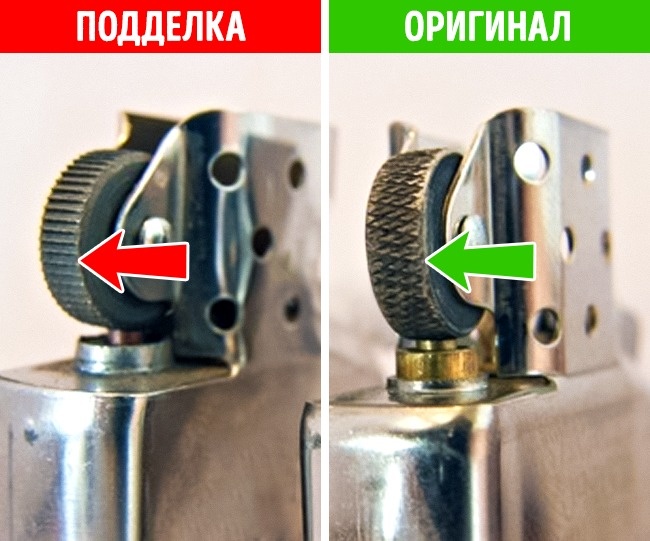 - Огляньте гніт: в оригінальній Zippo він виготовляється з полімерного матеріалу і обов'язково містить вплетенную металеву нитку, а в підробках часто застосовується дешевий гніт більш низької якості.