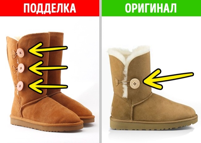 Перевірте країну виробника. UGG — це зареєстрована торгова марка, якою володіє американська компанія Deckers Outdoor Corp., виробництва якої не мають ніякого відношення до Австралії / Нової Зеландії. Оригінальні уггі виробляються тільки в 3 країнах: Китай, В'єтнам, США. Будь-які заяви продавця про те, що взуття виробляється в Австралії, — гарантія підробки.