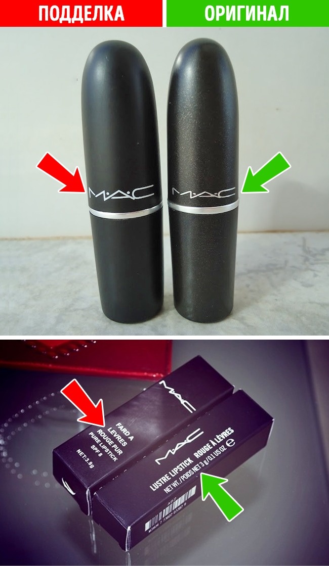 - Вивчіть фірмовий логотип і букви на упаковці. МАС має свій власний фірмовий знак з унікальним шрифтом, який використовується на всіх упаковках. Підроблені косметичні засоби мають такий логотип, але в цьому випадку літери або будуть розтягнуті, або якимось чином спотворені. Крім цього букви можуть розташовуватися не в тому місці, наприклад фірмовий знак МАС завжди розташовується по центру, в той час як логотип на підробленому товар може бути розміщений ближче до верхньої або нижньої частини упаковки.