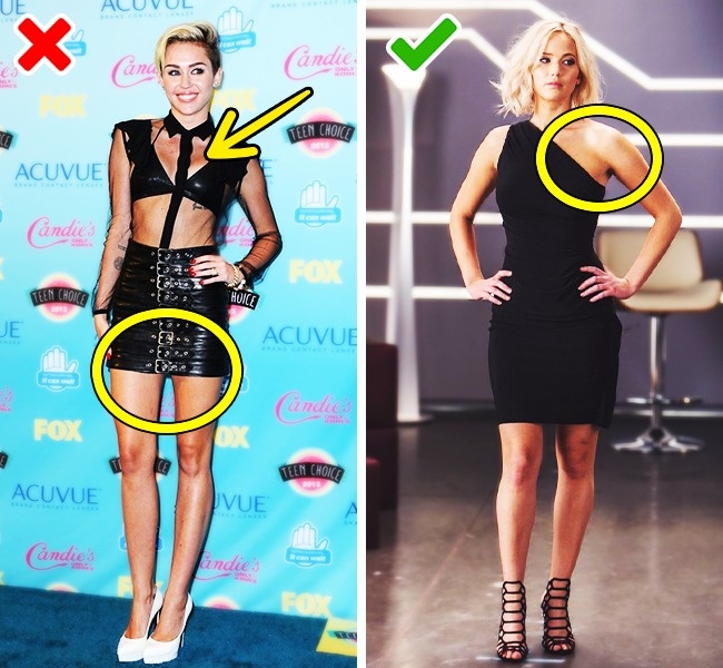 Якщо ви вирішили відкрити яку-небудь частину тіла, додавши образу спокусливості, завжди вибирайте щось одне (ноги, або зону декольте, або плечі). Відкривати всі відразу — верх непристойності.