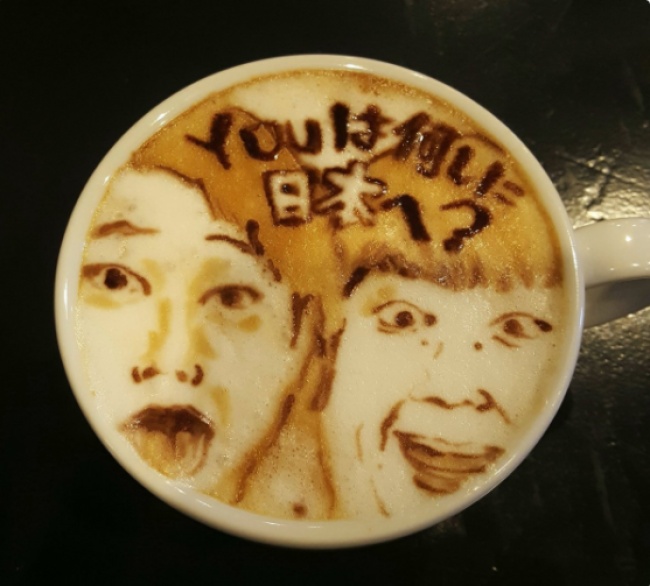 Японський художник-бариста Казукі Ямамото (Kazuki Yamamoto) працює в кав'ярні Café 10g» в Осаці і встиг прославити заклад своєю незвичайною технікою кавовій малювання.