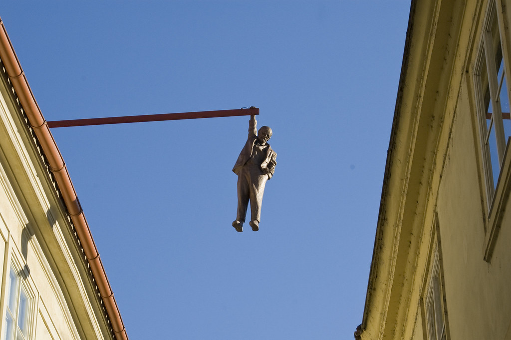 Ще одне творіння Давида Черні, що зображує Зиґмунда Фрейда, що висить на балці, закріпленої на даху будинку. Скульптура вийшла настільки вдалою, що побувала на «гастролях» в Чикаго і Лондоні. Забавно, що багато туристів приймають фігуру за скульптурне зображення Леніна.