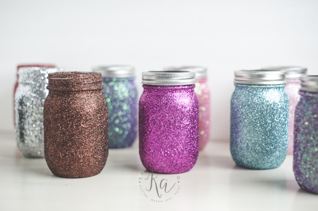 Ще один спосіб прикрасити банки, пляшки та інші ємності. Для цього майже нічого не треба, крім клею і блискіток.
