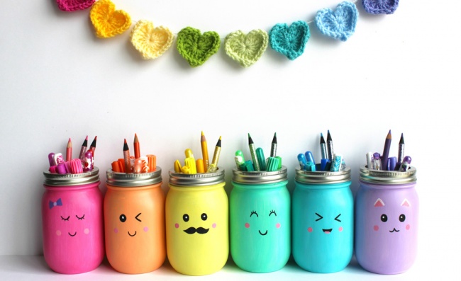 Прості банки для зберігання — це нудно. Перетворите їх за допомогою акрилових фарб, намалювавши веселі пики. Подивіться на цьому сайті, як створити таке диво своїми руками.