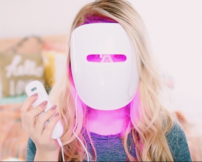 Ця чарівна маска позбавить вас від безпосереднього нанесення масок на обличчя. Всередині її розміщуються LED-лампочки: сині від бактерій і червоні для зменшення запалення. Надягати маску потрібно кожен день на 10 хвилин як мінімум протягом місяця.