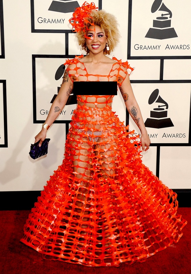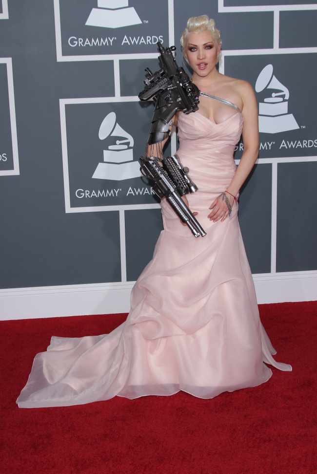 Після декількох фотографій співачку попросили зняти свій незвичайний рукав, тому що існує заборона на носіння будь-якого, навіть несправжнього зброї. Співачка відмовилася це зробити і покинула церемонію «Греммі».