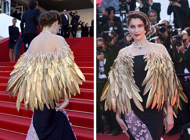 Модні критики помітили, що і без того самобутнє сукні від Dior, усипане квітами, не потребував доповнення у вигляді накидки з золотими перами. Саме із-за таких «крил» наряд Летиції потрапив у список найгірших суконь в історії Каннського фестивалю.