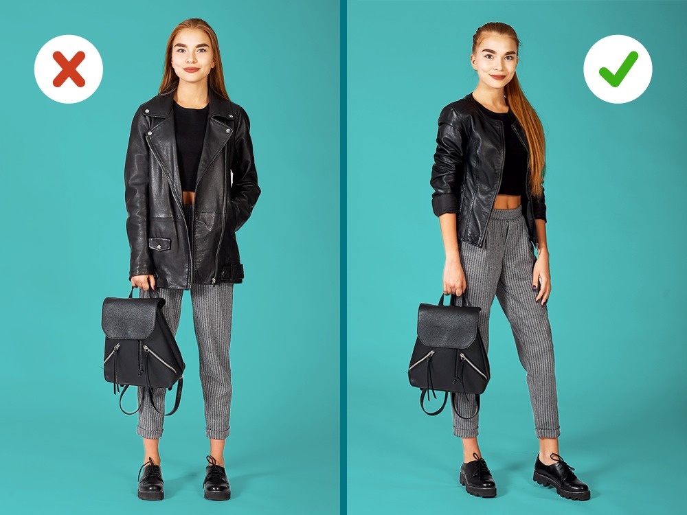 Невисоким дівчатам не варто носити об'ємні і подовжені жакети, піджаки і куртки — вони візуально вкорочують ноги і роблять силует розмитим і незграбним. Жакети і куртки краще вибирати невеликі за обсягом, і приталені укорочені, довжиною до талії або трохи нижче.