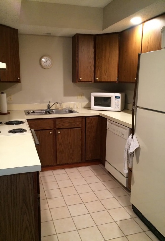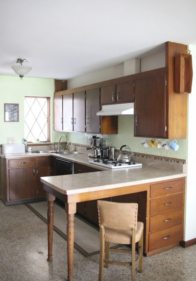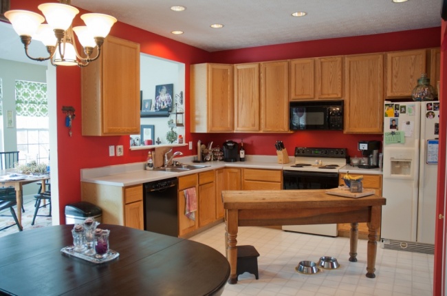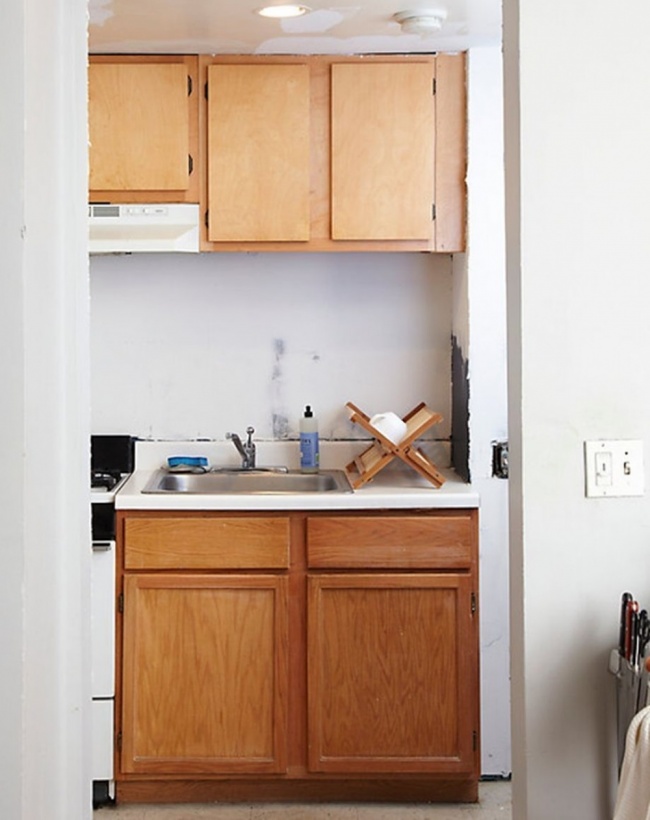 Здається, що перед нами дві різні кухні. Насправді меблі тут не змінювалася — стіни, гарнітур і двері просто-напросто перефарбували.