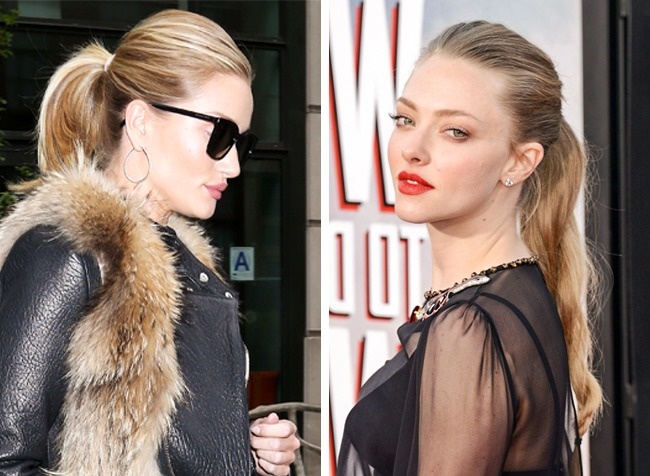 Аманда Сейфрід і Розі Хантінгтон—Уайтлі на прогулянку збирають свої довгі коси в простий і зручний низький хвіст. А ввечері переодягаються, роблять макіяж і вже готові блищати на світській вечірці!