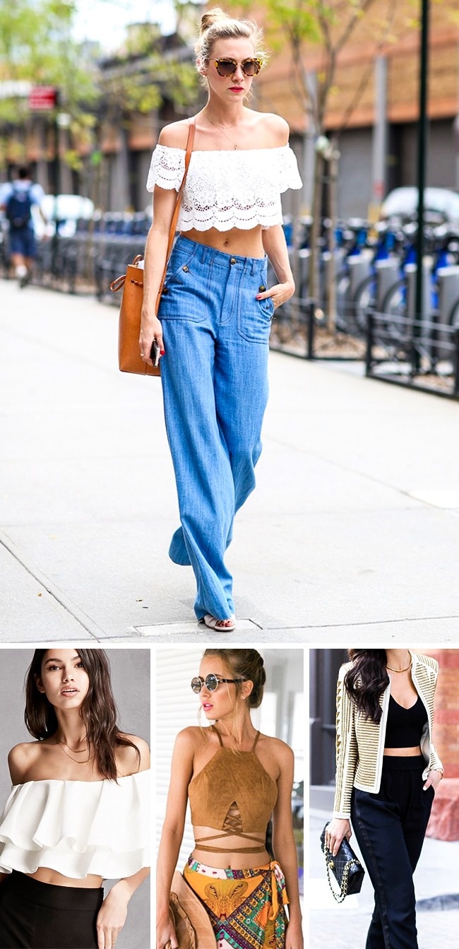 Схоже, можна сміливо заявляти, що мода початку 2000-х років на короткі топи знову повертається. Кроп-топи або бра-топи сьогодні доречно комбінувати практично з будь деталлю гардероба — брюками, спідницями, шортами.