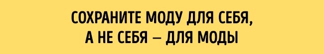 «Не заглиблюйтесь в тренди. Не дозволяйте моді заволодіти вами, вирішуйте самі, хто ви, що ви хочете висловити своїм одягом і способом життя».