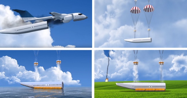 Український авіаінженер Володимир Татаренко винайшов знімний корпус літака, який відокремлюється в надзвичайній ситуації. Після відділення капсули спеціальний механізм уповільнює швидкість падіння і розкриває парашути, внаслідок чого пасажири приземляться в безпеці .