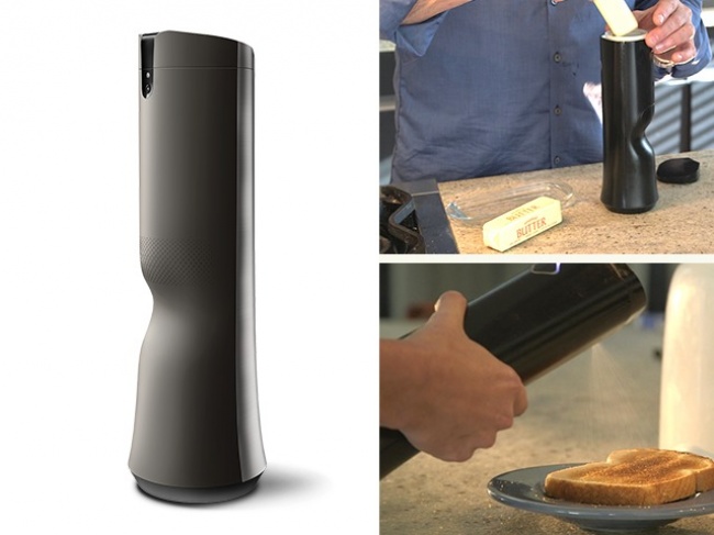 Вершкове масло — популярний і корисний, але не дуже зручний у використанні продукт. Адже тільки що вынутое з морозильної камери масло досить проблематично використовувати. Техаські інженери винайшли прилад, призначений для швидкого плавлення вершкового масла і подачу його назовні у вигляді спрею.