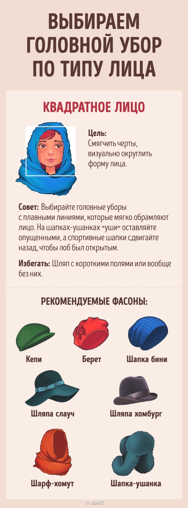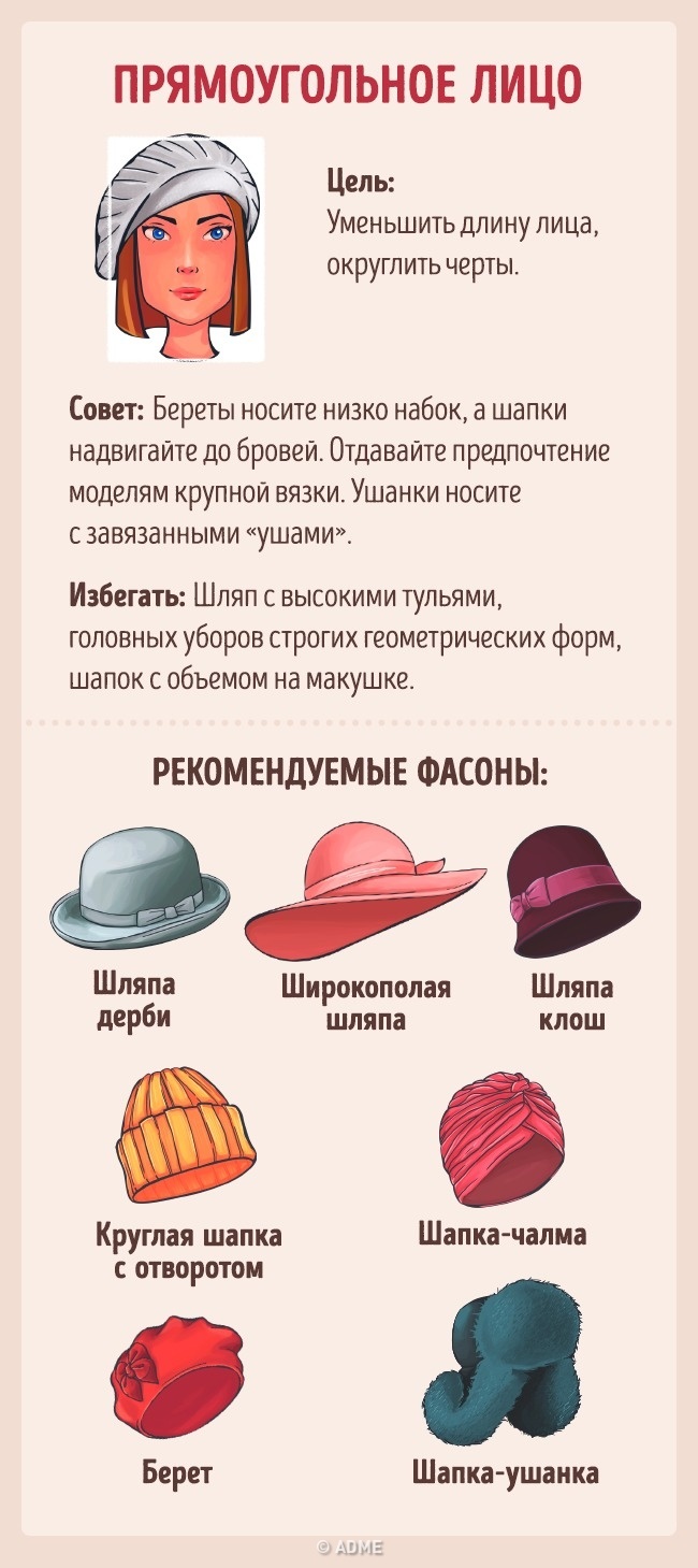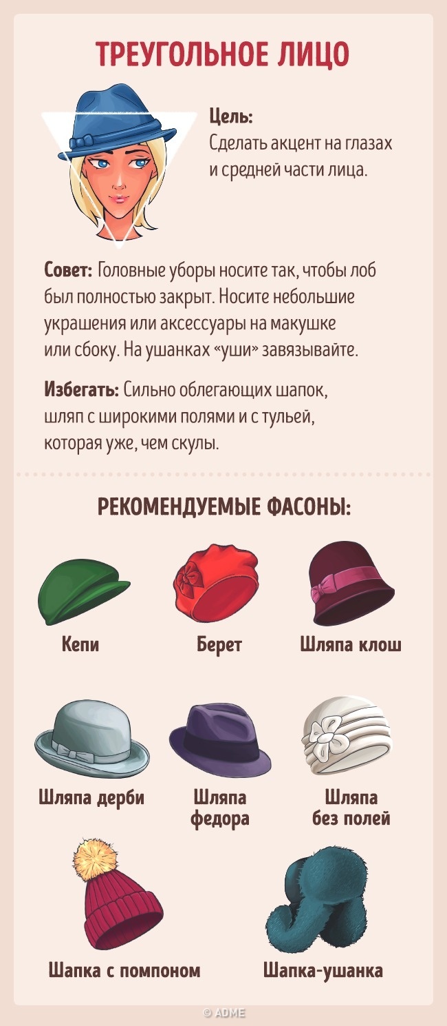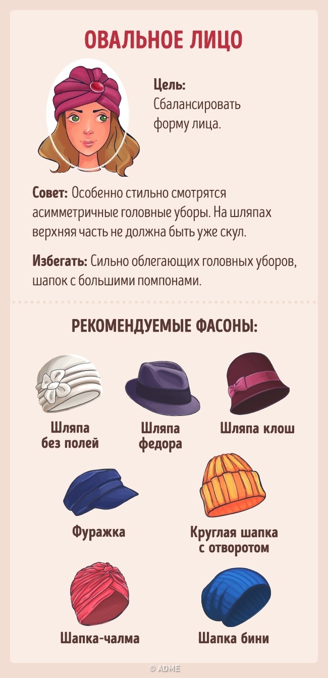 Social.org.ua пропонує просту і зрозумілу інфографіку, яка допоможе вибрати ідеальний бере, шапочку або капелюх у відповідності з формою обличчя.