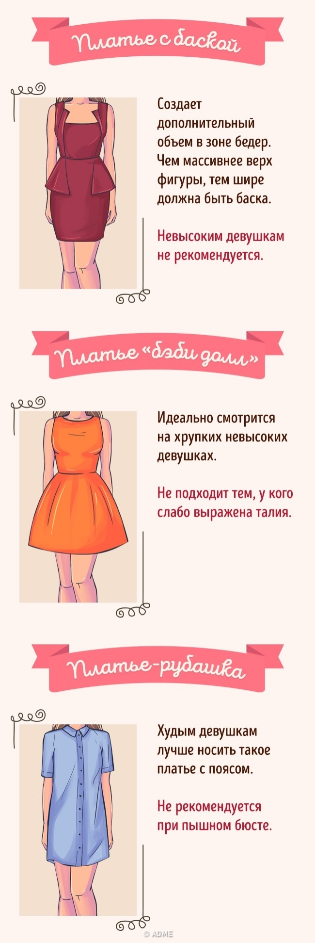 Правильно підібране плаття допоможе підкреслити достоїнства і приховати недоліки фігури. Вибір одягу стає значно легше, якщо дотримуватися деяких стилістичних прийомів.