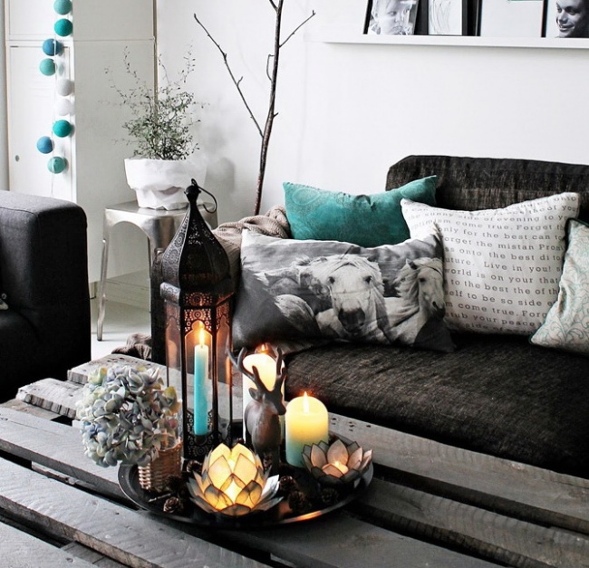 Затишні пледи, барвисті подушки, м'які килимки і приглушене світло торшерів завжди створюють приємну атмосферу. Нейтральна кімната відразу наповнюється кольором і теплом. До речі, ковдру та подушки можна покласти злегка недбало, щоб усім входять відразу хотілося розміститися на дивані або в кріслі.