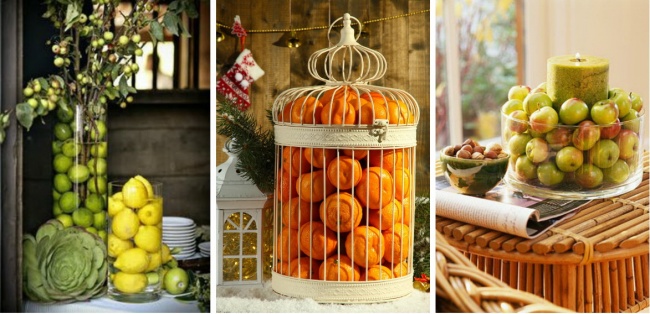 Це може бути будь-який предмет: камінці, шишки, дерев'яні фігури, фрукти і т. д. Краще, якщо ці предмети будуть насиченого кольору. Ви можете покласти їх у вазу або миску і поставити на видному місці. Ваша мета — зробити акцент. При цьому ємність краще вибирати простої форми і прозору.