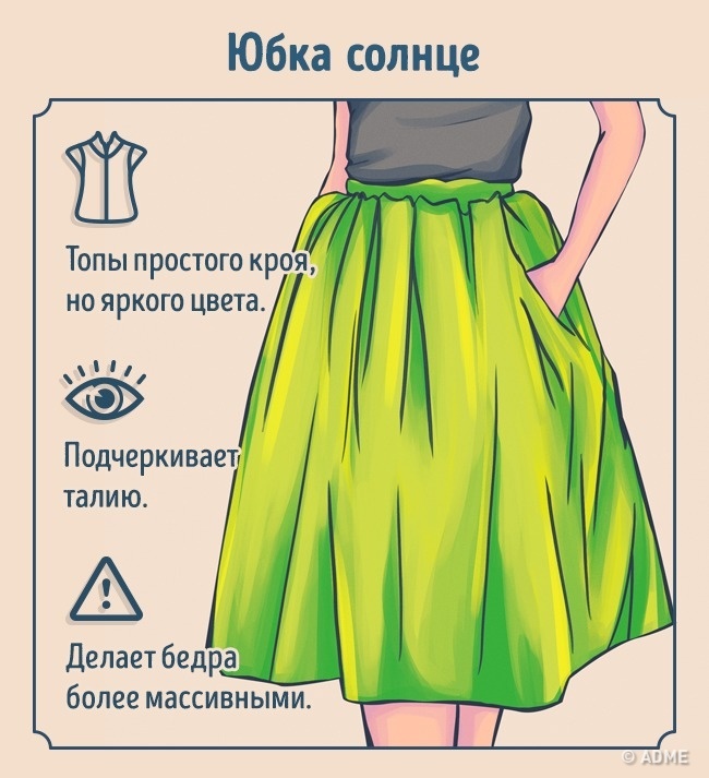 Social.org.ua підготував просту шпаргалку, яка допоможе розібратися у всіх тонкощах і вибрати ідеальну спідницю по типу вашої фігури.