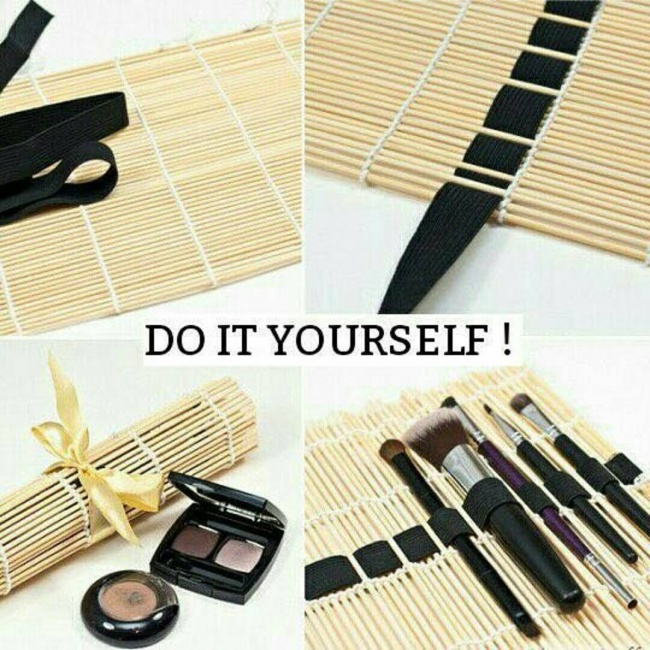 - Чохол для пензликів можна зробити за 5 хвилин: вам знадобляться серветка з бамбука, широка гумка, нитка і стрічка.