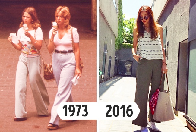 І не тільки широкі. За часів молодості наших мам в тренді встигли побувати і суперактуальные сьогодні кюлоти, і укорочені злегка розкльошені брюки. Є з чого вибрати!