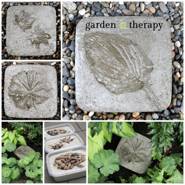 З допомогою пластикових контейнерів, бетону і листя теж можна зробити дуже красиві блоки для доріжки. Інструкція.