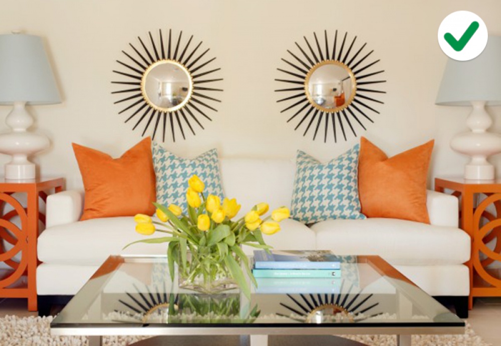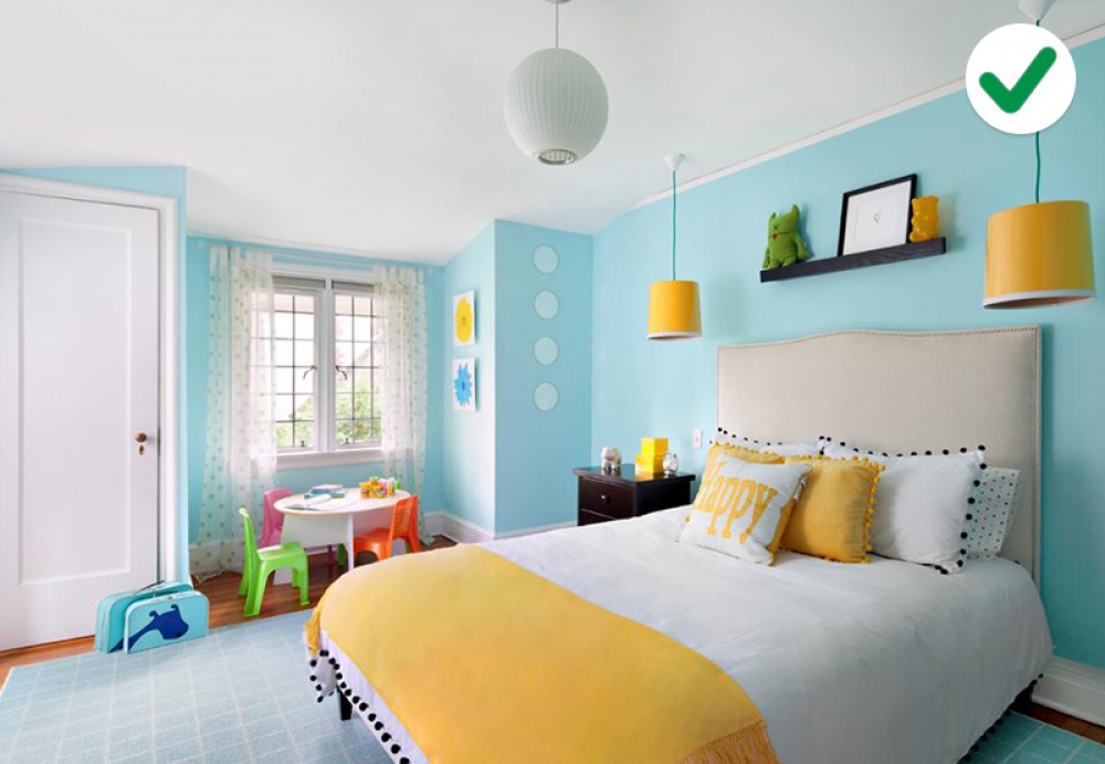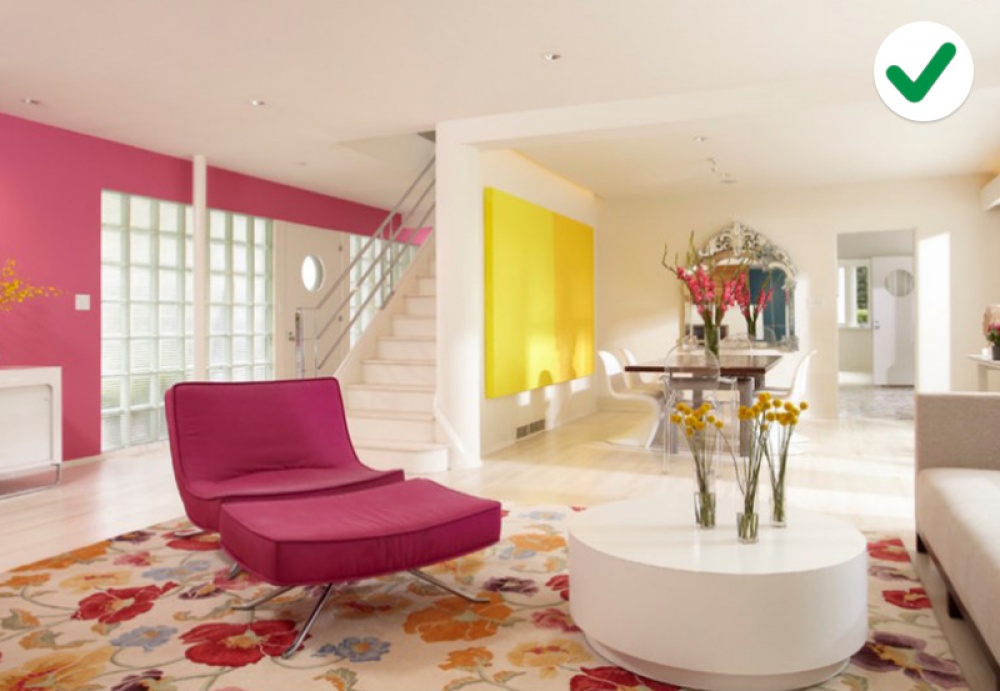 Не використовуйте в інтер'єрі тільки один колір. З допомогою улюбленого відтінку зробіть акцент на стінах, меблях або інших предметах інтер'єру. Кілька розрізнених яскравих плям створять більший ефект, ніж заповнення простору одним кольором.