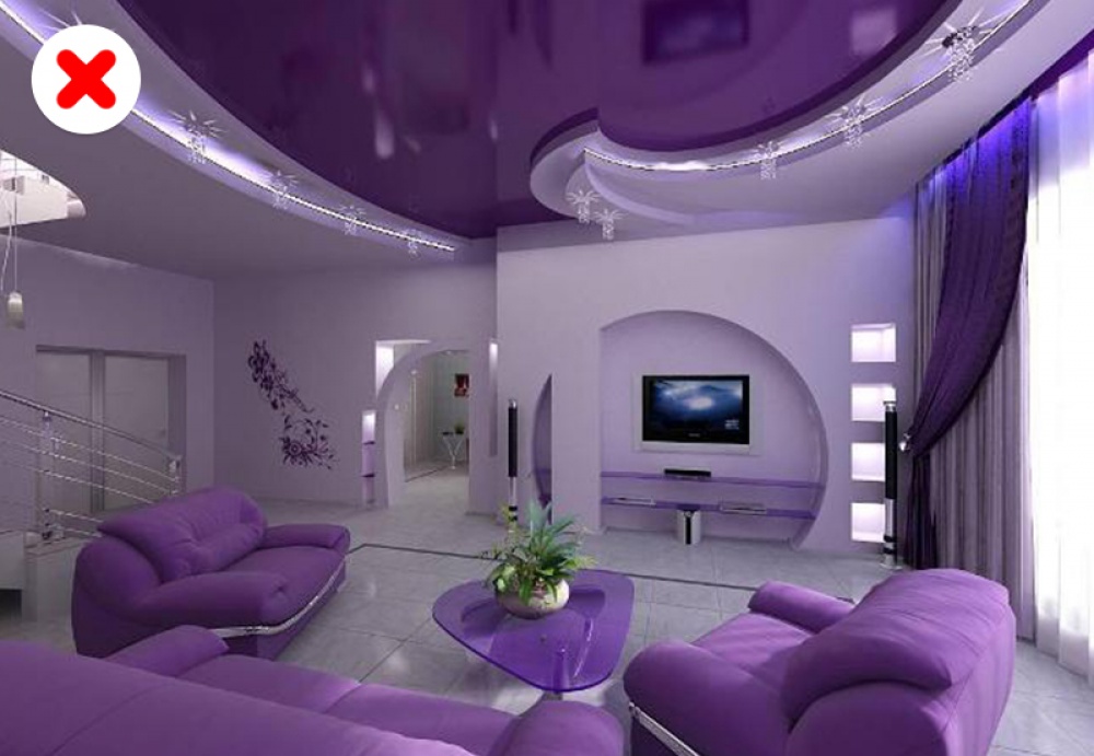 Всі предмети меблів і декору повинні гармонійно доповнювати інтер'єр кімнати. Вибираючи яскраві і строкаті покриття для стін і стель, в подальшому ви ризикуєте втратити єдиний стиль приміщення і зробити його смаку.
