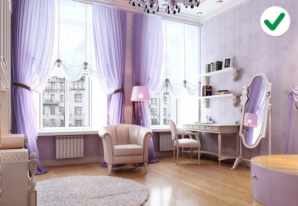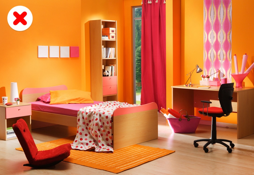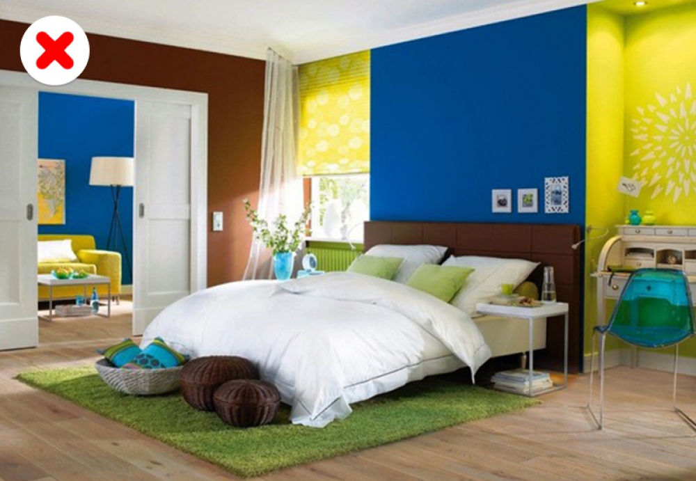 Не рекомендується використовувати занадто яскраві кольори, тому що вони дратують око. Але якщо ви все ж хочете внести кольорові плями, нехай їх буде небагато: це забезпечить більш м'яку і спокійну атмосферу.