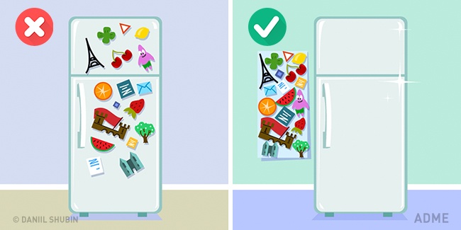 Магніти, облепляющие холодильник, вносять на кухню візуальний сумбур. Для колекціонерів є вихід: організувати місце зберігання пам'ятних дрібниць на стіні за допомогою магнітної дошки або магнітної фарби.