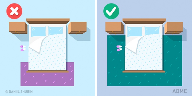 Існує думка, що чим менше кімната, тим менше повинен бути килим, але це велика помилка. Насправді ж, маленький килимок поруч з ліжком візуально з'їсть більше простору, ніж великий добротний килим.