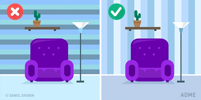 Відомо, що темні шпалери сильно зменшують приміщення в розмірах. Але варто також пам'ятати і те, що горизонтальний малюнок робить простір «важким». Щоб у кімнаті було світло і просторо, краще віддавати перевагу світлим шпалер і вертикальним малюнками.