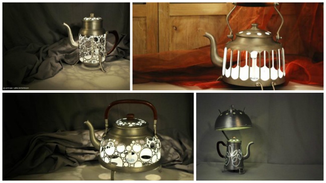 Якщо запастися дрилем, набором свердел для металу і терпінням, можна створити з чайників чудові лампи. Більше ідей тут.