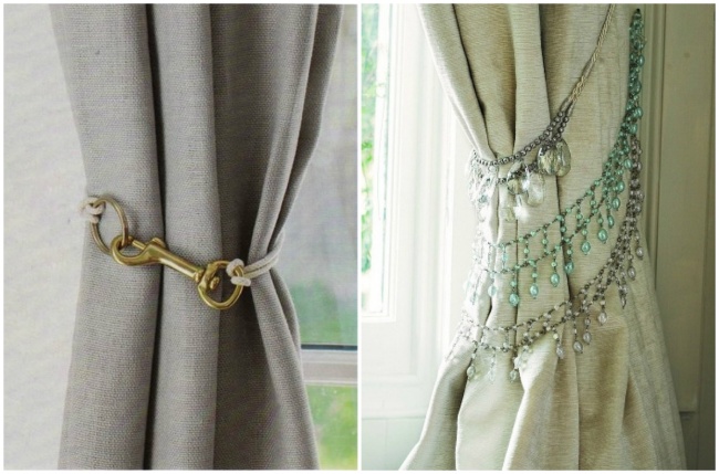 Старі намиста або карабін можна використовувати в якості фіксатора штор.