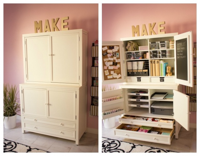 Якщо поруч з основним робочим місцем є шафа, комод або закриті полиці, то це неймовірне везіння. Як раціонально використовувати вільний простір, дивитися тут.