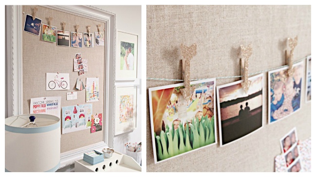 Хто сказав, що дошка для нагадувань повинна бути одна і велика? Набагато простіше і цікавіше зробити кілька варіантів і закріпити їх декоративними гачками, як тут.
