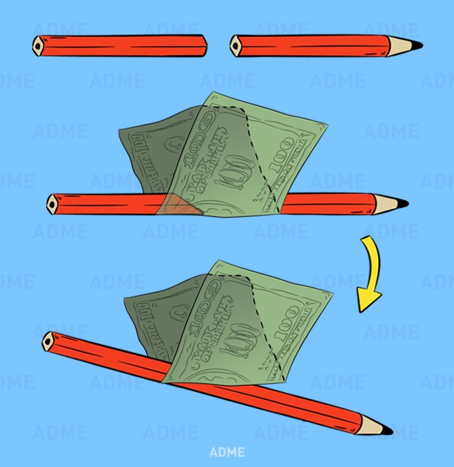 Раніше народ дивувався, коли Копперфільд прямо на очах у людей рвав складений навпіл долар, потім повертав його і він опинявся цілим. А секрет тут у хитро влаштованому олівці: насправді він розрізаний навскоси і з'єднаний сильними магнітами! Таким чином, купюра легко проходить між його намагніченими половинками і залишається неушкодженою.