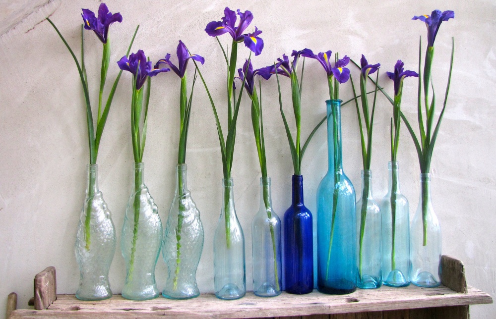 Якщо хочеться прикрасити інтер'єр, а часу особливо немає, можна почати з простого. Одиночні квіти у високих скляних пляшках з-під вина або газованої води приваблюють погляд і вписуються майже в будь-який інтер'єр. Вишукано виглядають пляшки однакової і різної форми, зі схожими або неоднорідними квітами. Пора починати збирати тару!
