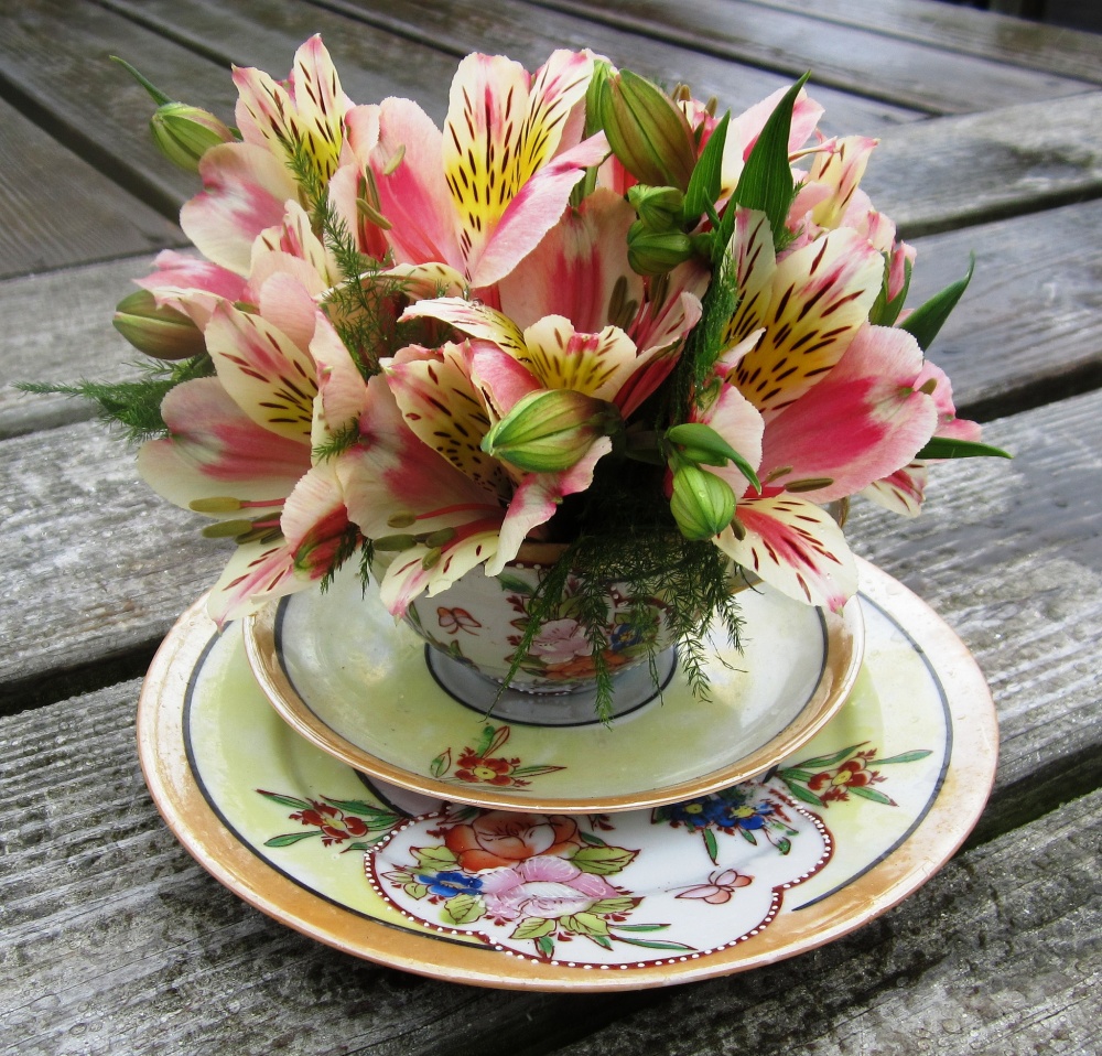 Яскраві квіти, розташовані в чайних або кавових чашках, здатні підняти настрій і прикрасити невелике чаювання. Виходить практично і романтично. У невеликому посуді також зручно вирощувати пряні трави, кактуси або домашні рослини.