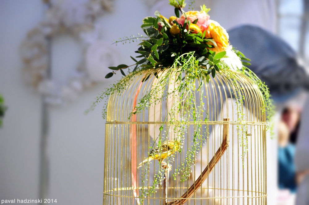 Пташину клітку можна обіграти по-різному. Ваза з квітами всередині клітини або букет на її верхівці виглядають однаково розкішно. Така прикраса будинку можна підвісити або встановити в центрі столу.