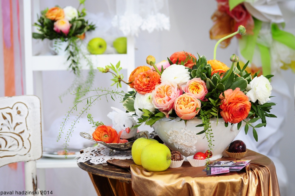 Якщо супниця порошиться в шафі просто так, саме час пустити її в справу. Використовуючи плоску вазу супницю або в якості основи, ви можете скласти дуже урочистий букет, який підходить для особливих днів.