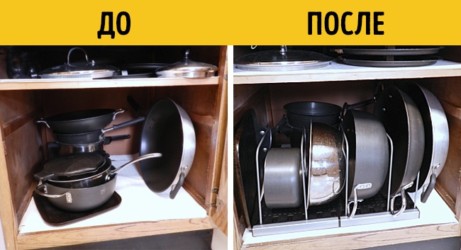 Тут не потрібно кожен раз витягати все сковорідки, щоб дістати потрібну.