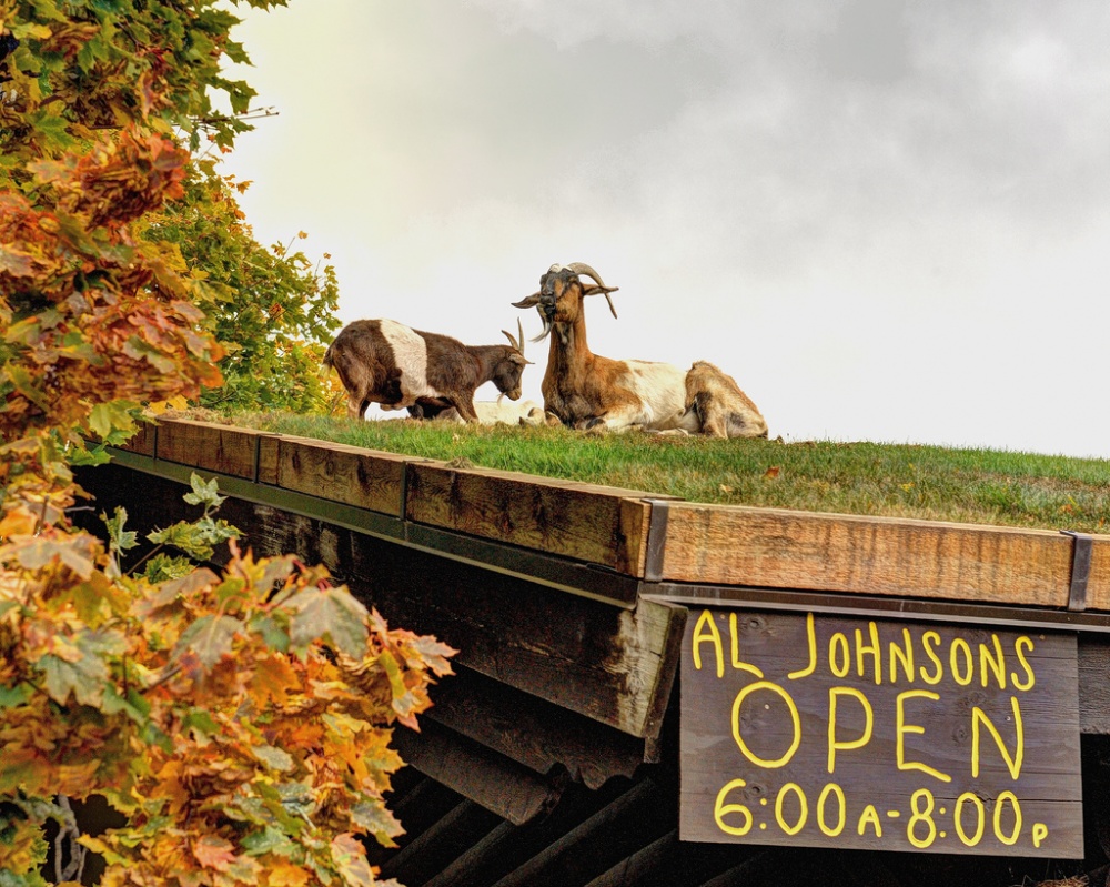 Власники шведського ресторану в одному з штатів Америки пішли ще далі. Вони не тільки відтворили національний будинок, але і зареєстрували оригінальний товарний знак — кози на даху.