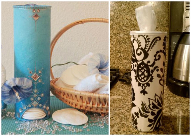 Вирізавши невелике округле отвір внизу банки, ми змайструємо відмінний тримач для ватних дисків або кавових капсул. А якщо зробити маленьку дірку в пластмасовій кришці, вийде відповідне місце для зберігання поліетиленових пакетів.