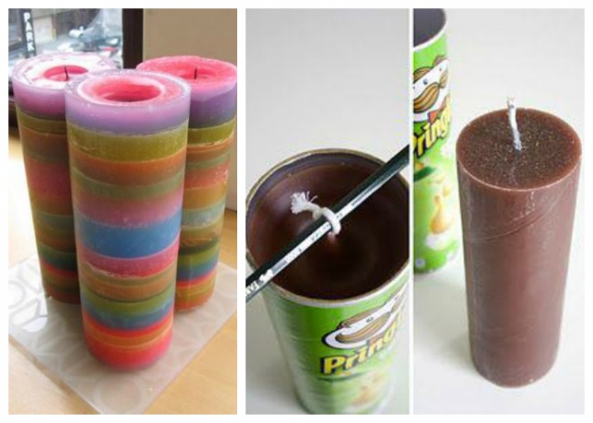 У вільні від чіпсів банки можна заливати розплавлений віск у будь-яких поєднаннях і пропорціях і на виході отримувати свічки домашнього виробництва.