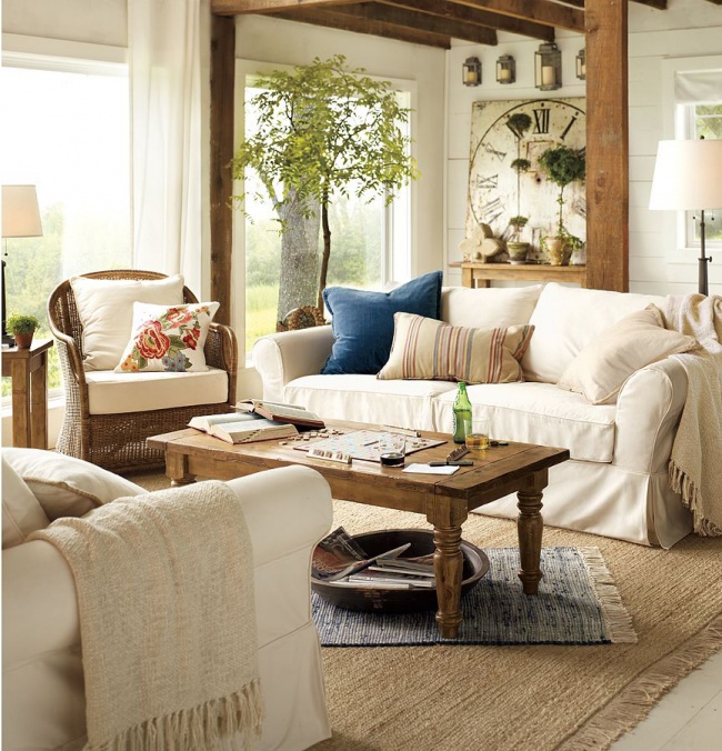 - Тканини роблять приміщення більш обжитим і затишним. Перекиньте вінтажну шаль через бильце крісла. Використовуйте покривала, накидки, подушки і пледи.