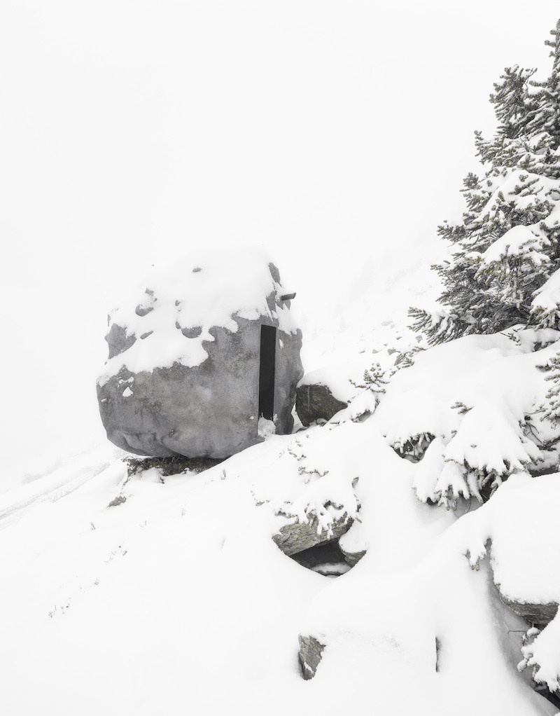 Насправді цей валун — дерев'яний будинок, виконаний за проектом швейцарської архітектурної студії Bureau A. Творці назвали своє дітище «Antoine» і встановили його в Швейцарських Альпах. За їх задумом, дивна споруда зможе служити притулком для мандрівних художників, якщо ті, звичайно, здогадаються, що це не камінь, а справжнє мисливське житло.