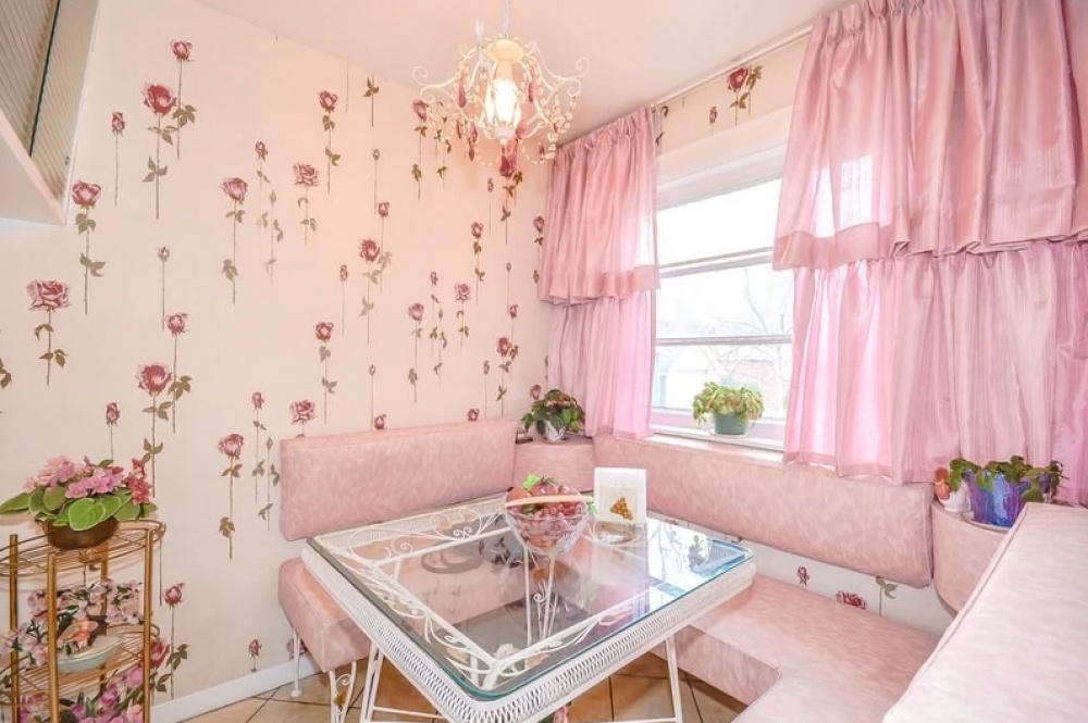 «Я завжди намагалася бути оригінальною і дотримуватися свого стилю. Мої улюблені кольори — рожевий, фіолетовий, колір морської хвилі», — зізнається господиня дому. Незважаючи на вік, вона самостійно доглядала за будинком, поки не виставила його на продаж.