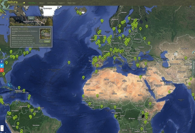Це нове слово в ніші сайтів-«шумелок». Звуки прив'язані на карті до тих місць, де вони записані, причому це звуки дикої природи. Відмінний спосіб вчити географію і віртуально подорожувати.